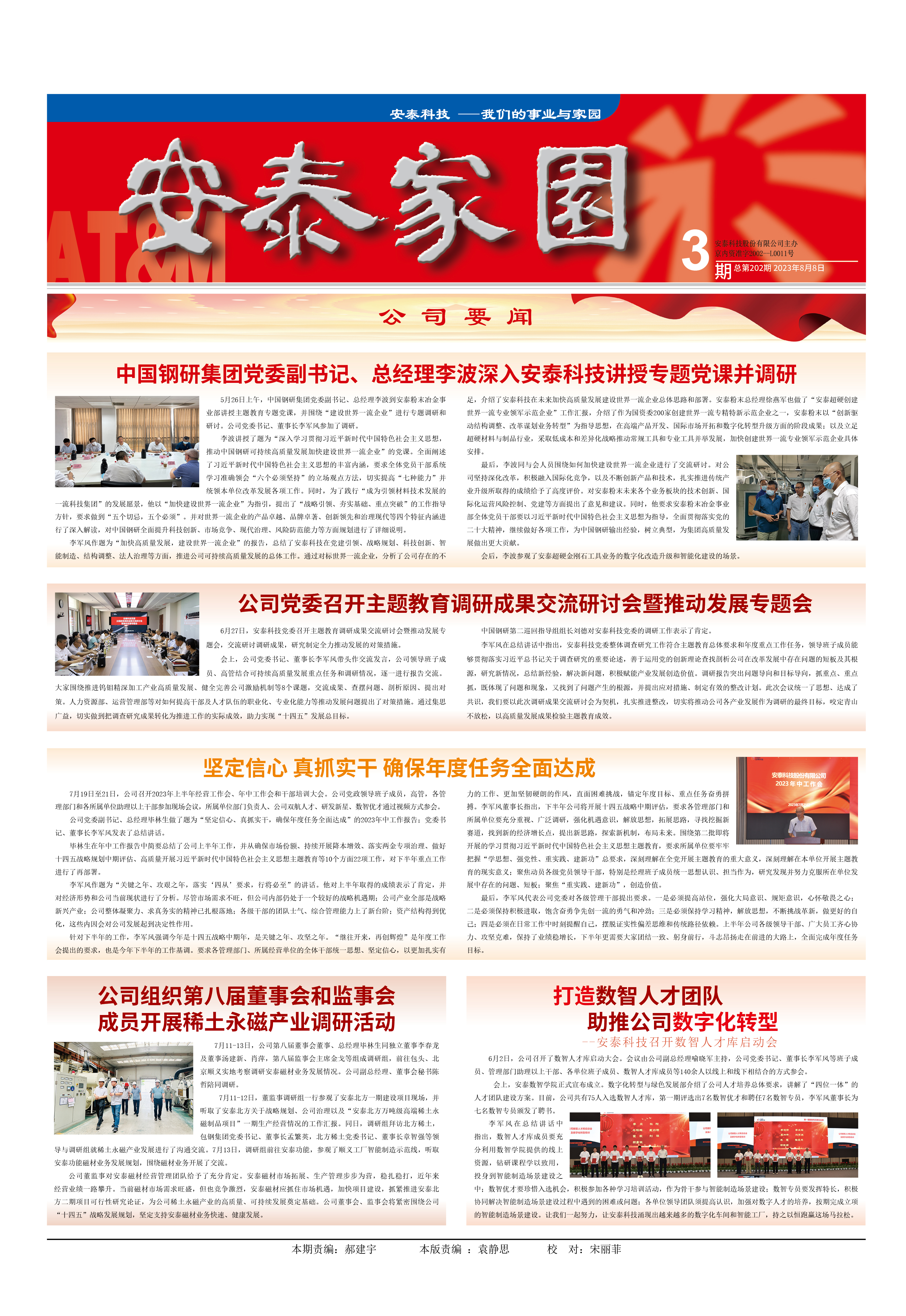 5月26日上午,中國鋼研集團黨委副書記、總經(jīng)理李波到安泰粉末冶金事業(yè)部講授主題教育專題黨課,并圍繞“建設(shè)世界一流企業(yè)”進(jìn)行專題調(diào)研和研討。公司黨委書記、董事長李軍風(fēng)參加了調(diào)研。