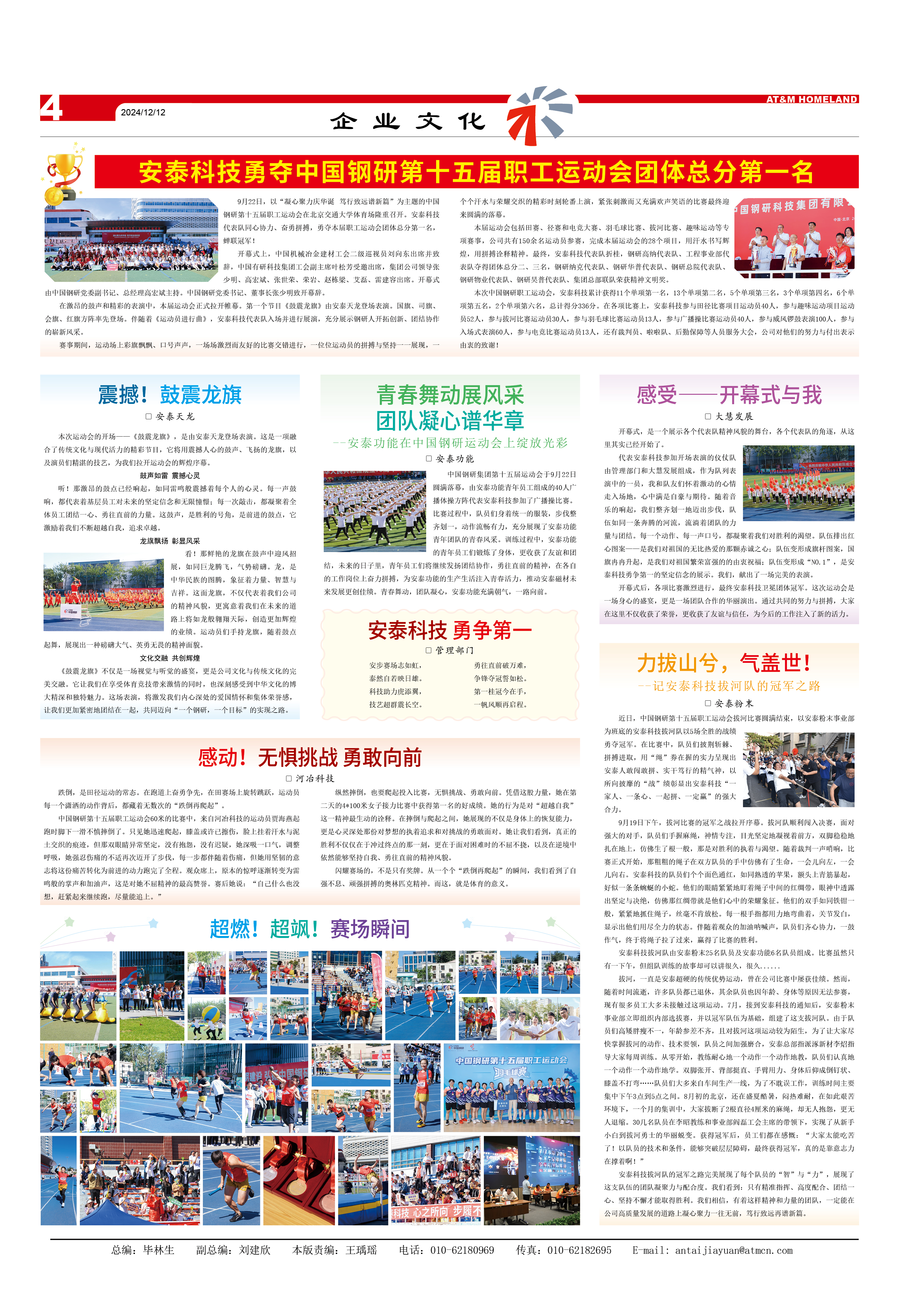 本次中國鋼研職工運(yùn)動(dòng)會(huì),安泰科技累計(jì)獲得11個(gè)單項(xiàng)第一名,13個(gè)單項(xiàng)第二名,5個(gè)單項(xiàng)第三名,3個(gè)單項(xiàng)第四名,6個(gè)單項(xiàng)第五名,2個(gè)單項(xiàng)第六名,總計(jì)得分336分。在各項(xiàng)比賽上,安泰科技參與田徑比賽項(xiàng)目運(yùn)動(dòng)員40人,參與趣味運(yùn)動(dòng)項(xiàng)目運(yùn)動(dòng)員52人,參與拔河比賽運(yùn)動(dòng)員30人,參與羽毛球比賽運(yùn)動(dòng)員13人,參與廣播操比賽運(yùn)動(dòng)員40人,參與威風(fēng)鑼鼓表演100人,參與入場式表演60人,參與電競比賽運(yùn)動(dòng)員13人,還有裁判員、啦啦隊(duì)、后勤保障等人員服務(wù)大會(huì),公司對他們的努力與付出表示由衷的致謝!